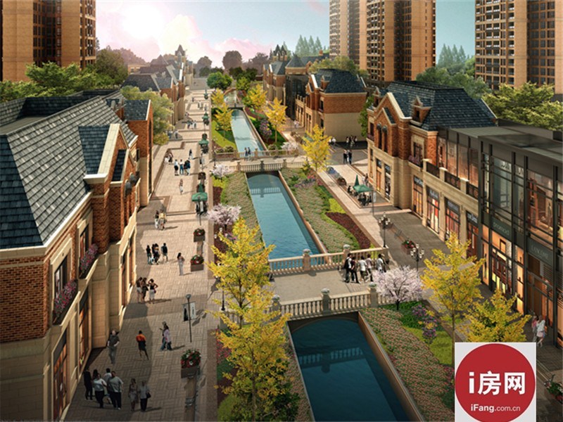 项目总占地138亩,整个项目分为两期开发,北面为一期,分布有7栋高层电梯,南面为二期,分布有12栋高层电梯,同时规划有400米原味欧式商业风情水街,项目整体采用围合加点式布局,相对的楼栋之间错开修建,保证最大视野,避免对视。在风情街与楼栋之间,建有绿化设施加以区隔,确保社区内的私密性和住户的舒适性。小区内楼栋之间最大楼间距近300米,超大楼间距保证了本案的高端品质和住户足够的私密性。